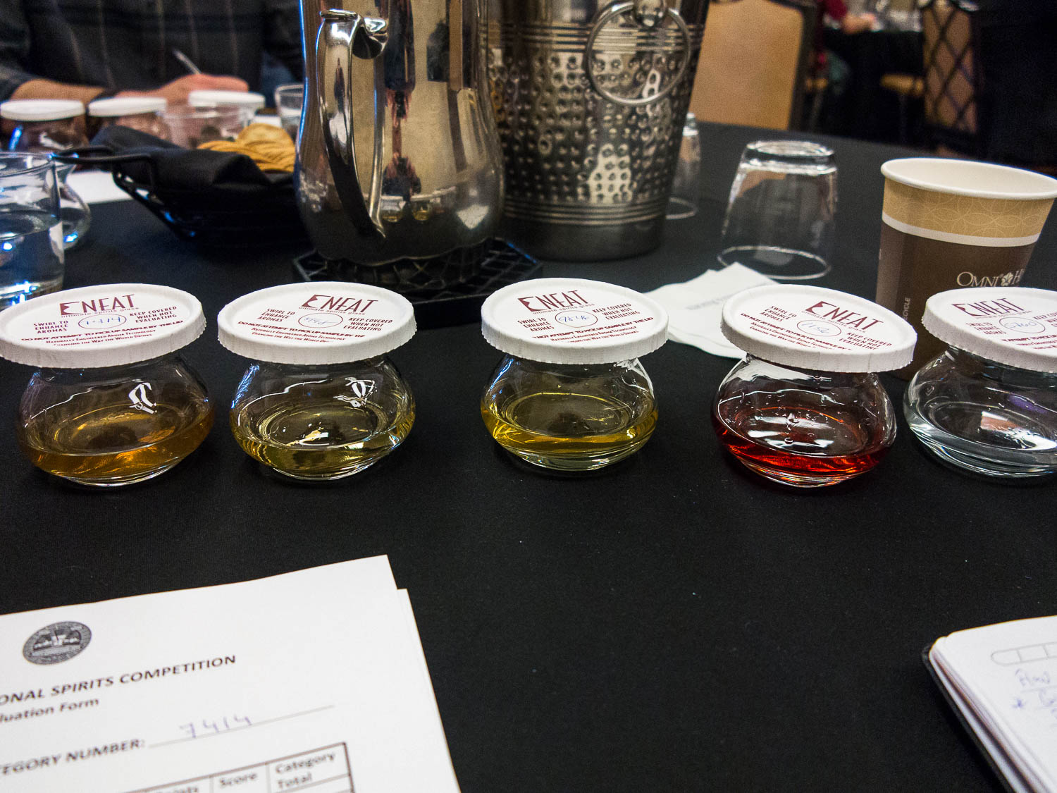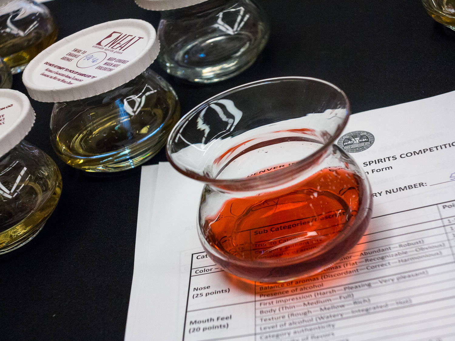 I was very impressed with the variety of judges at the Denver Spirits Competition. Our group consisted of distributors reps, bar owners, bartenders, and spirits educators. Spirits were judged double-blind with a 100 point scale. 80 to 85 points being bronze 86 to 91 being silver 92 and over for gold. Tastings were done with the Neat Glass which had these very convenient cardboard covers to keep aromas from interfering with other tastings. All said and done there were 150+ spirits judged in two days. We started off the tasting with 17 corn vodkas in a row which sound a bit dull but it helped hone our skills for the long two-day stretch. Days started off with lighter fare front like vodkas and ended with flavor bombs like cinnamon whiskey. As you can see from the pictures we got some very unique spirits also some of which were good and some were not so good. All in all, I had a great time, was very educational, and I got to meet some cool people. Here are the results…